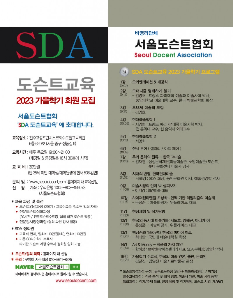 2023가을학기 SDA도슨트교육 실시 안내 [교육생 모집]